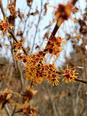Yup. In spite of the late March snow we’re getting ready for spring here at Bloomin’ Root Nursery. The Witch Hazel is in bloom–the earliest show in Carol’s botanical collection. As many of you may know, she was passionate about color in the landscape.